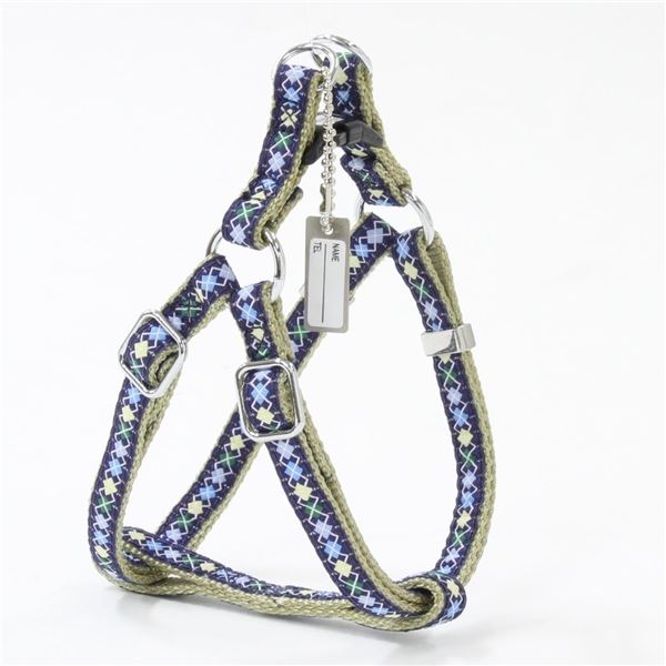 流行に左右されないアーガイル柄の超小型犬用ハーネス。着脱簡単なワンタッチタイプ。
